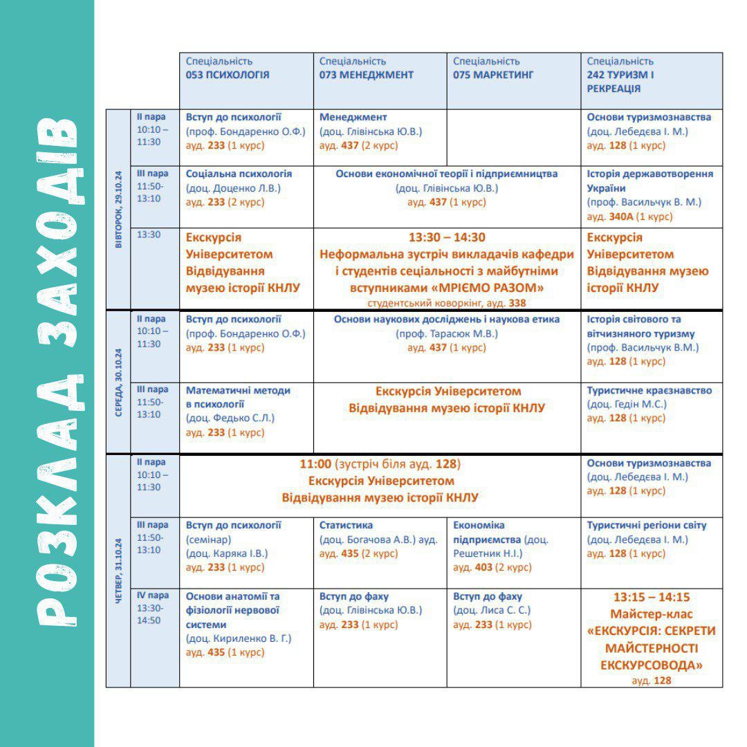 Факультет туризму, бізнесу і психології запрошує вас цікаво і корисно провести осінні канікули!