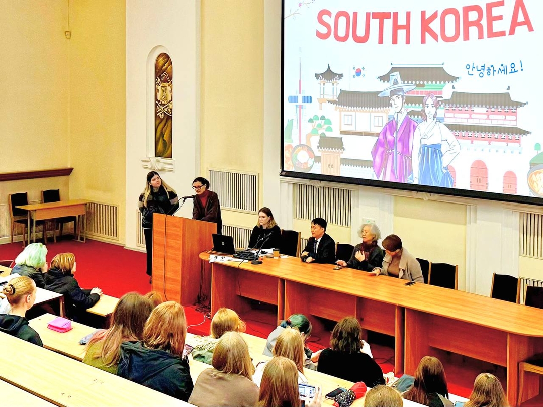 Пан Чжон Чон Юн поділився цікавими фактами про історію створення корейського алфавіту, розповів про його унікальні особливості та зазначив, що із задоволенням відвідує Університет кілька разів на рік.