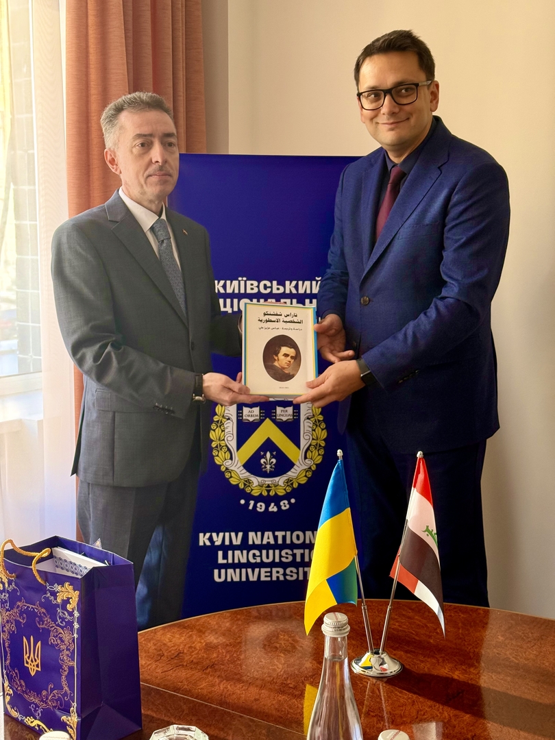 У знак дружби та взаємоповаги Поважний Міністр презентував книгу перекладів творів Тараса Шевченка арабською мовою, яка стане цінним надбанням бібліотеки Центру арабської мови і культури КНЛУ та символом духовного діалогу між українським і арабським світом.