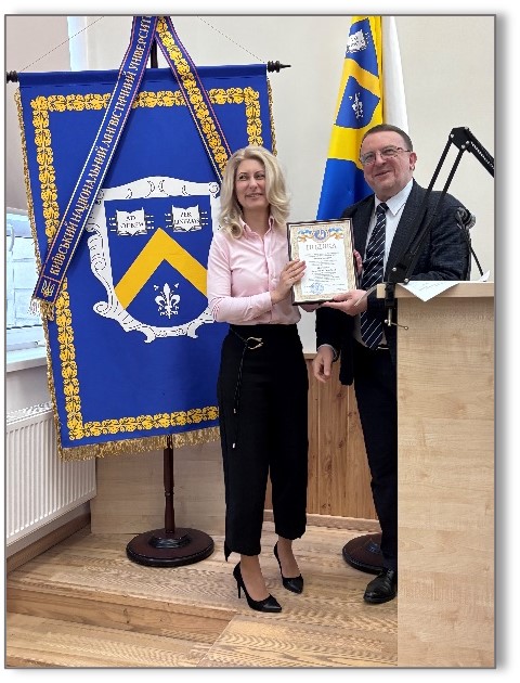 На початку засідання в.о. ректора Університету Роман ВАСЬКО урочисто привітав з присвоєнням вченого звання доцента кандидата педагогічних наук, доцента кафедри англійської мови і перекладу Олену ЛИСЕНКО і вручив науково-педагогічним працівникам відзнаки Київського національного лінгвістичного університету за сумлінну і бездоганну працю, значні досягнення у роботі, високий професіоналізм, зразкове виконання посадових обов’язків, вагомий внесок у розвиток освіти і науки, а також з нагоди Дня науки.