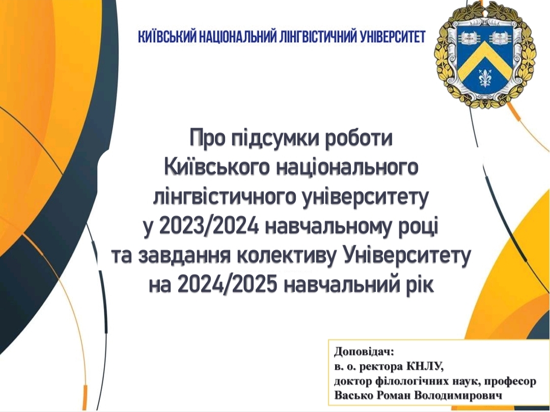 Про підсумки роботи Київського національного лінгвістичного університету у 2023/2024 навчальному році та завдання колективу Університету на 2024/2025 навчальний рік