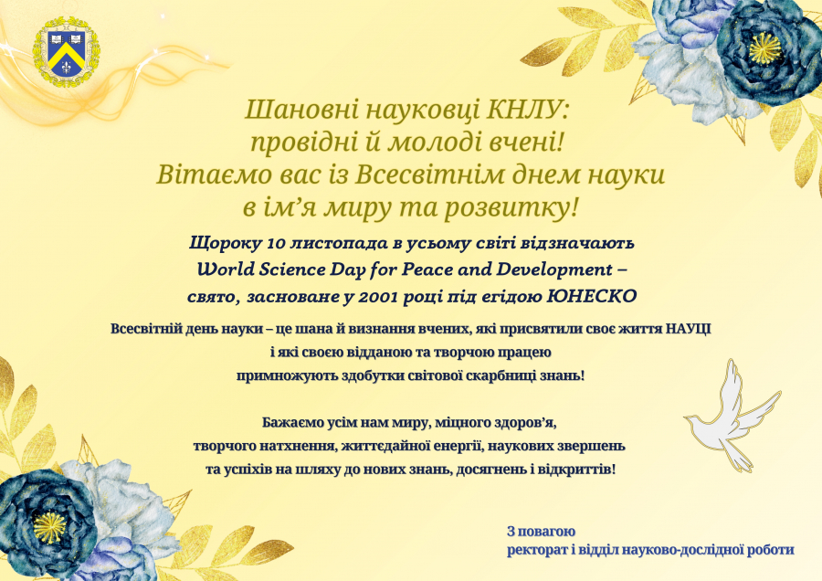 Привітання зі Всесвітнім днем науки в ім'я миру та розвитку