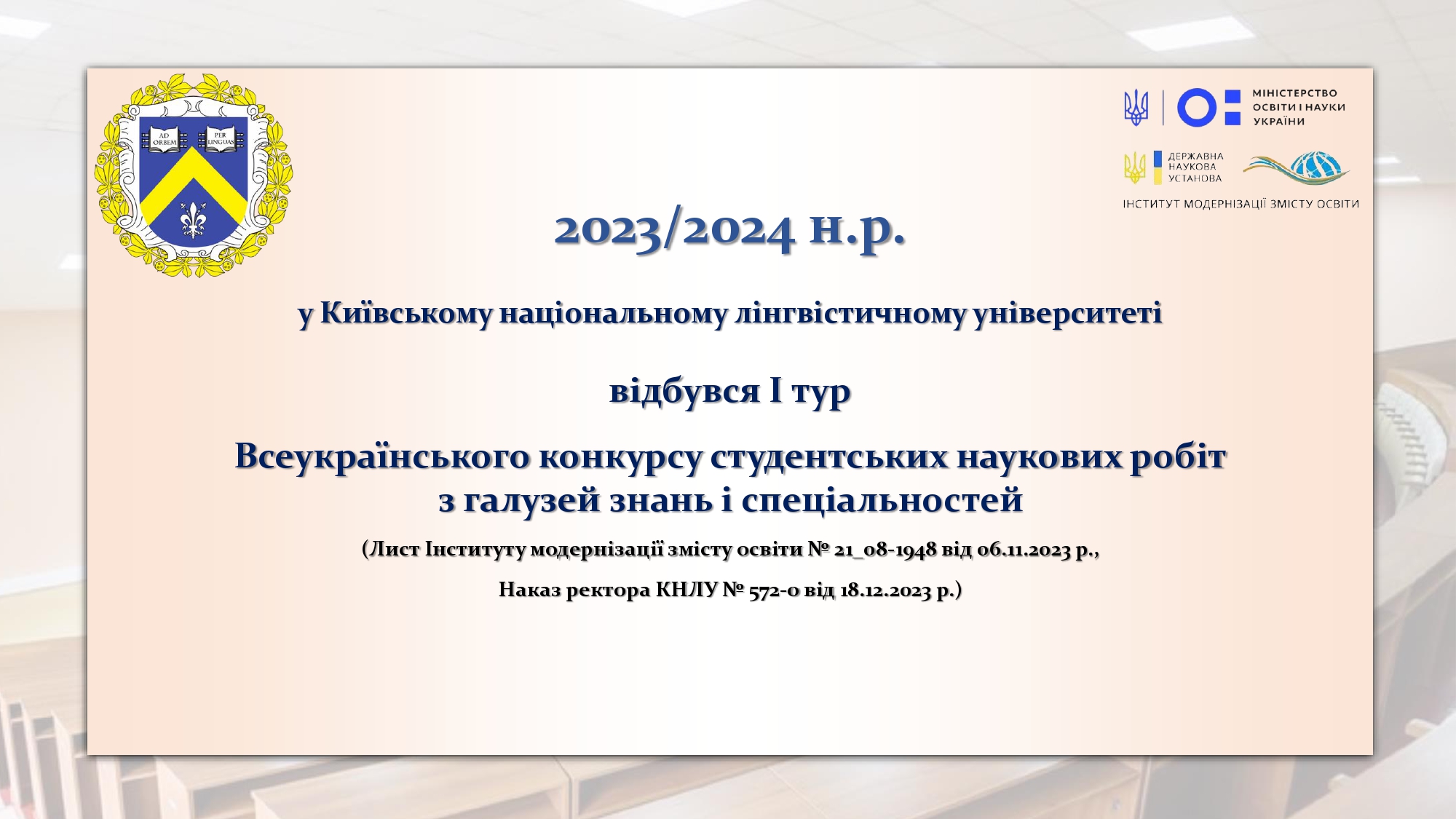 Вітаємо переможців І туру Всеукраїнського конкурсу студентських наукових робіт з галузей знань і спеціальностей
