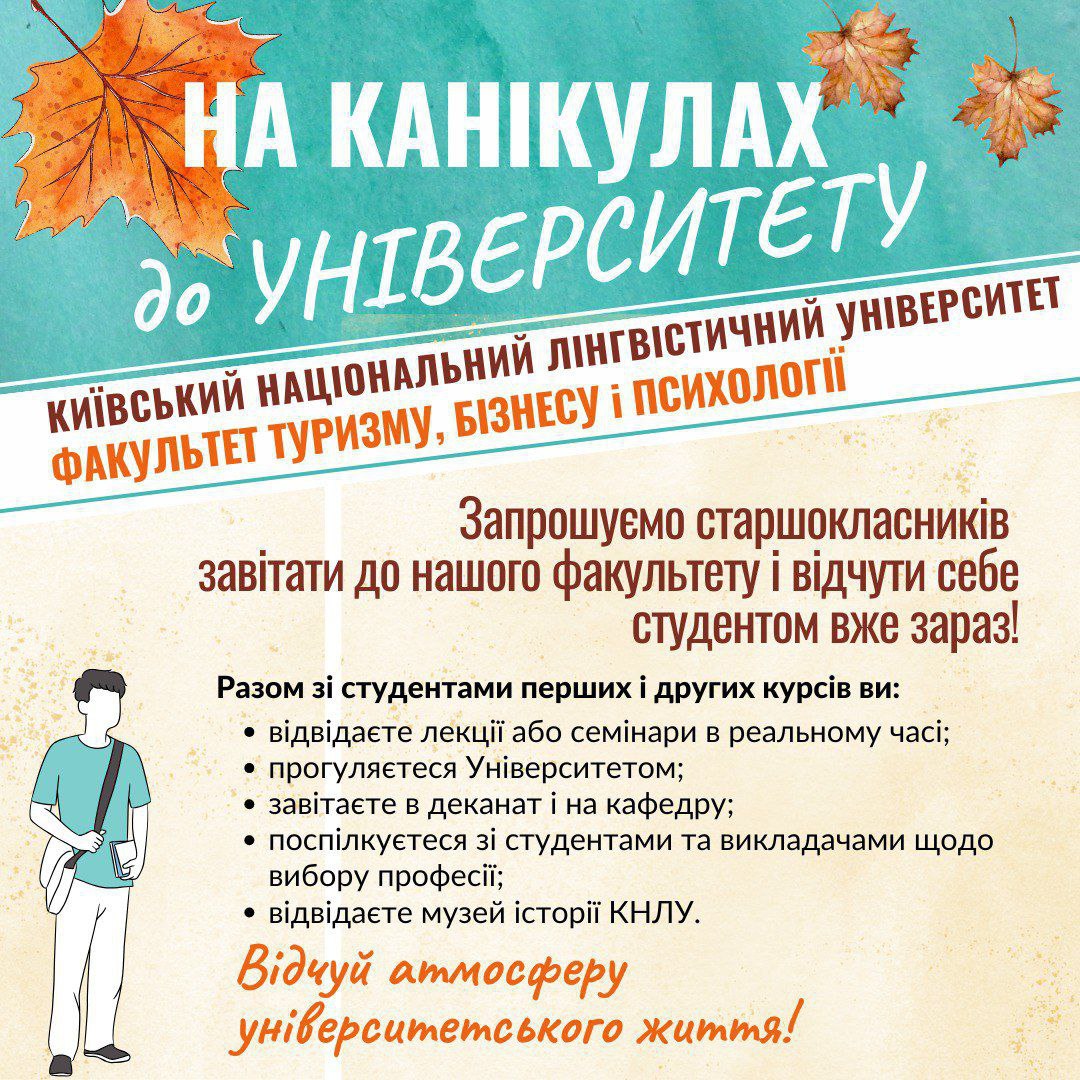 Факультет туризму, бізнесу і психології запрошує вас цікаво і корисно провести осінні канікули!