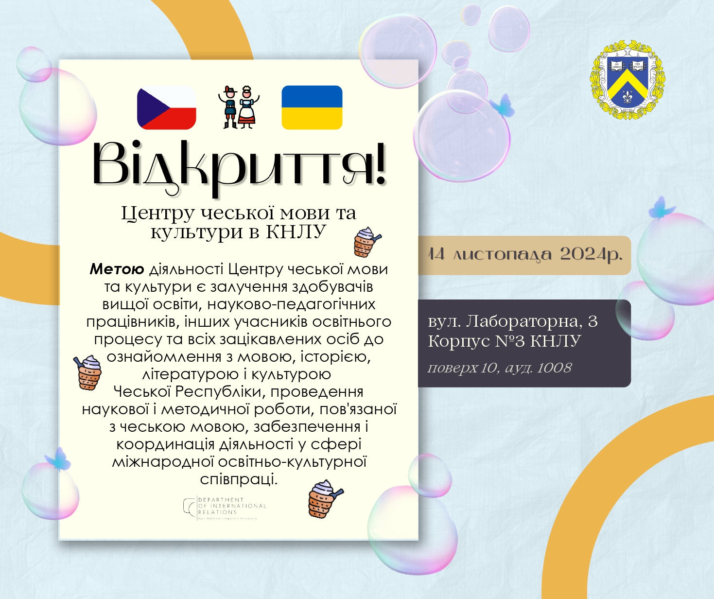 Раді запросити вас на офіційне відкриття Центру чеської мови та культури КНЛУ