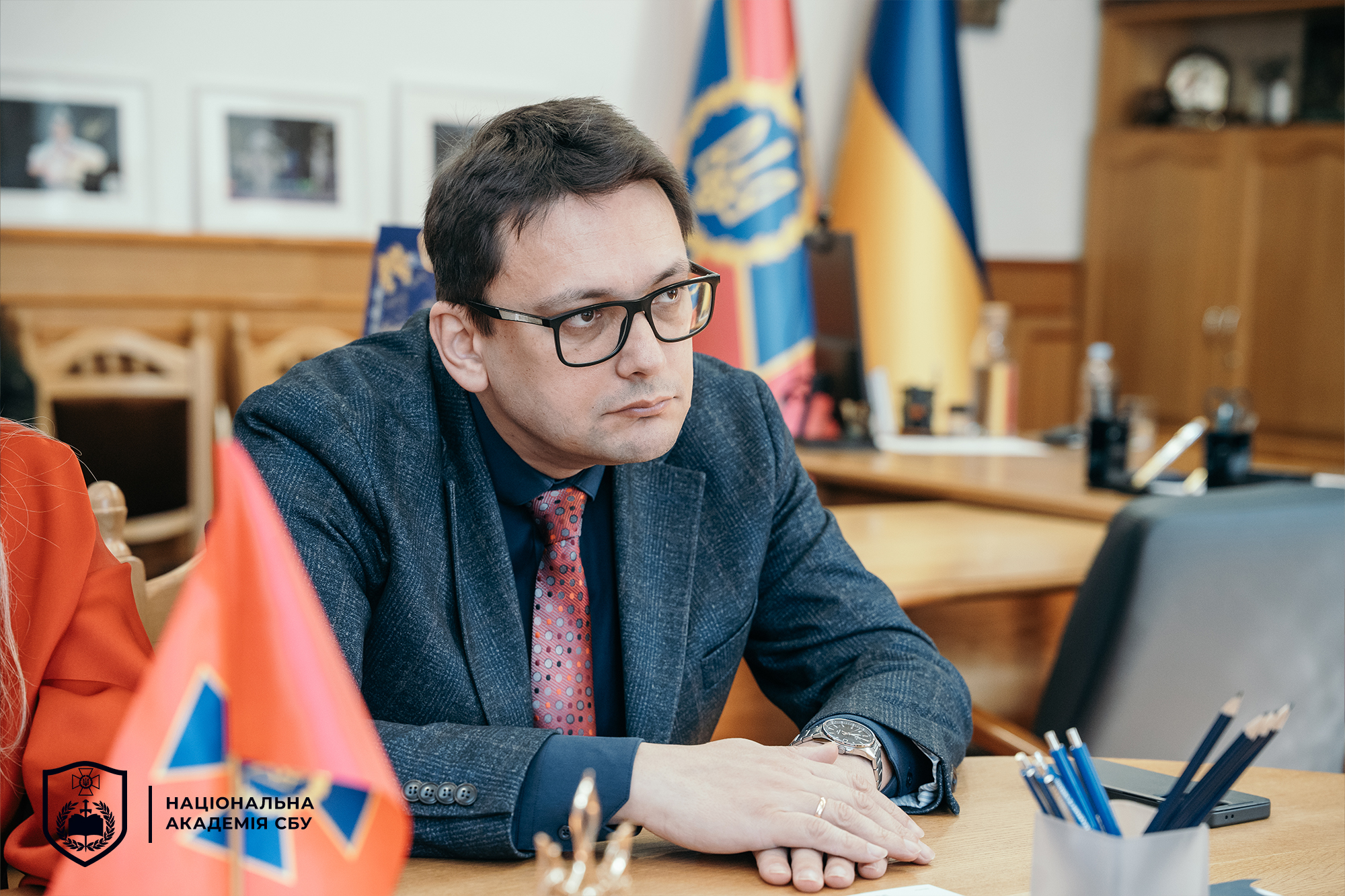 У робочій зустрічі також взяли участь проректор з наукової роботи КНЛУ Алла Корольова, проректор з науково-педагогічної роботи КНЛУ Наталія Стефанова та керівниця напряму стратегічних комунікацій НА СБУ Лариса Компанцева.