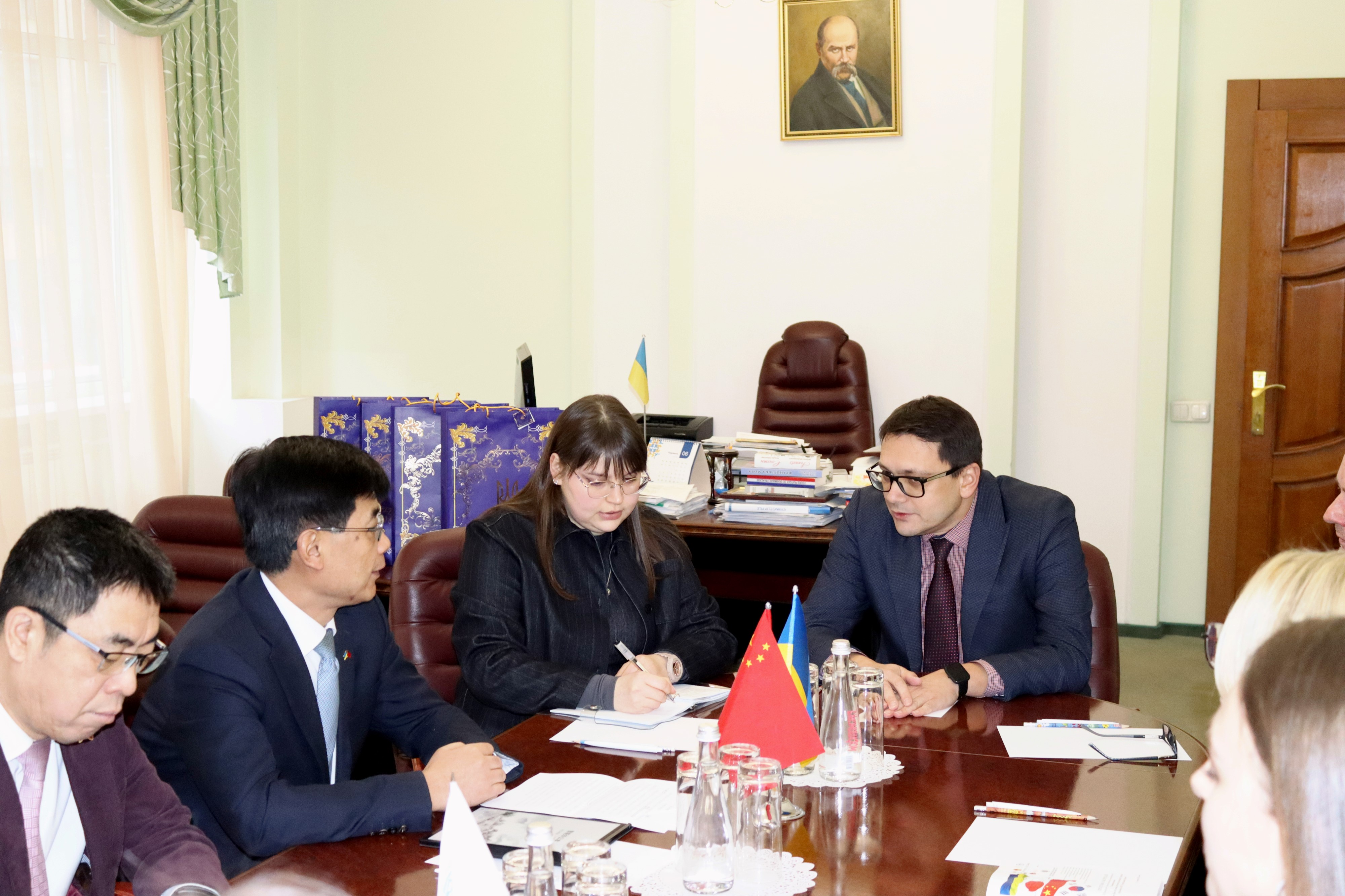 Надзвичайний і Повноважний Посол Ма Шенкунь відзначив, що КНР підтримує Україну в ці складні для неї часи, особливу увагу акцентував на ролі КНЛУ у зміцненні співпраці з багатьма закладами вищої освіти КНР у сферах освіти, науки і культури. Високоповажний Посол запевнив, що Посольство КНР в Україні й надалі сприятиме КНЛУ в його міжнародній діяльності, яка насамперед спрямована на широку популяризацію китайської мови і культури.