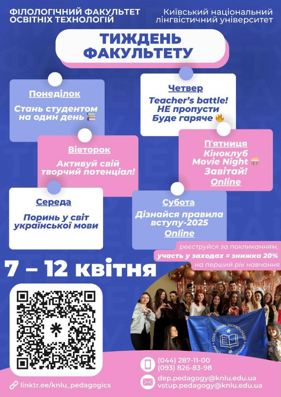 Київський національний лінгвістичний університет запрошує учнів 10-11 класів на тиждень філологічного факультету освітніх технологій!