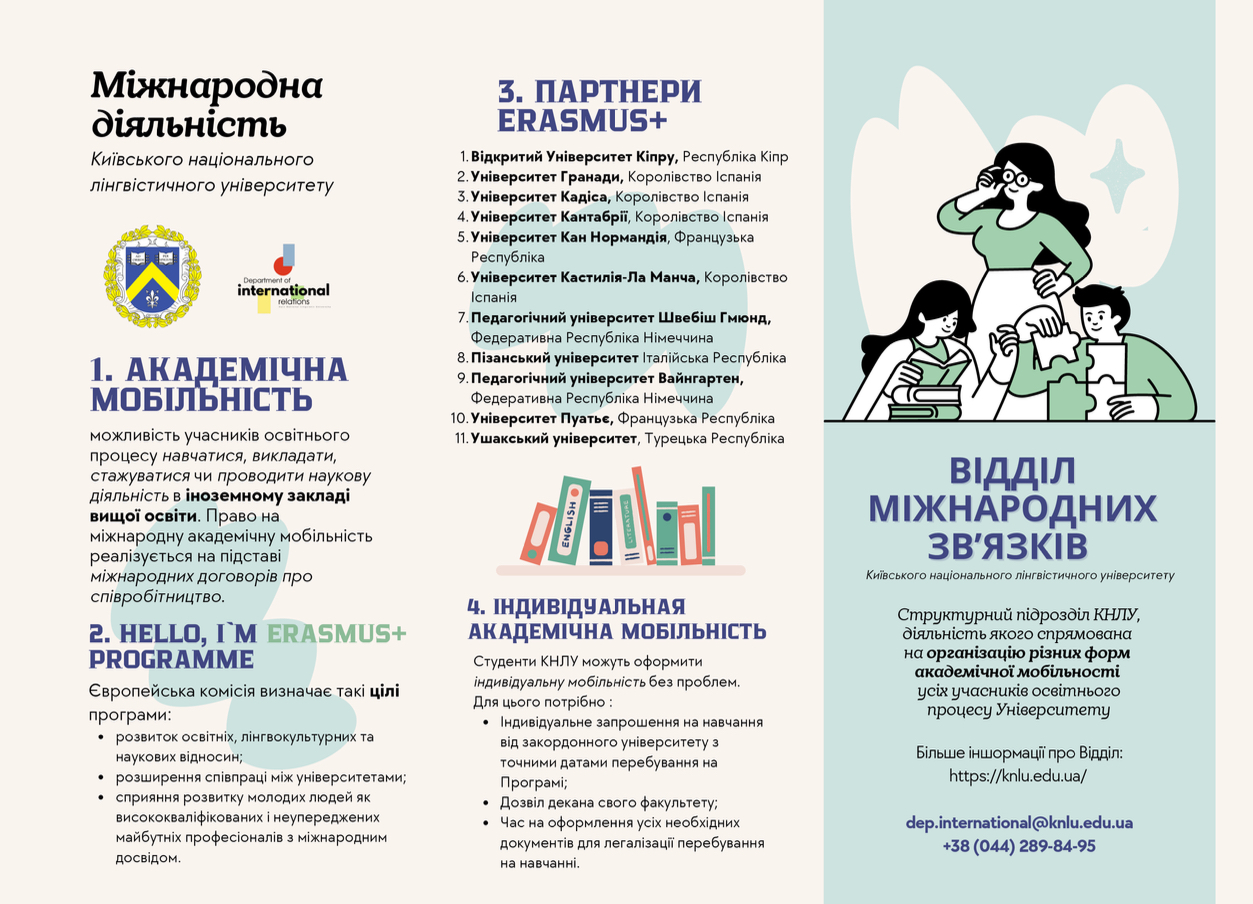 У межах інформаційної сесії «Академічна мобільність: можливості та виклики» буде представлено комплексний огляд актуальних програм академічної мобільності для студентів, аспірантів, докторантів, молодих учених та викладачів.