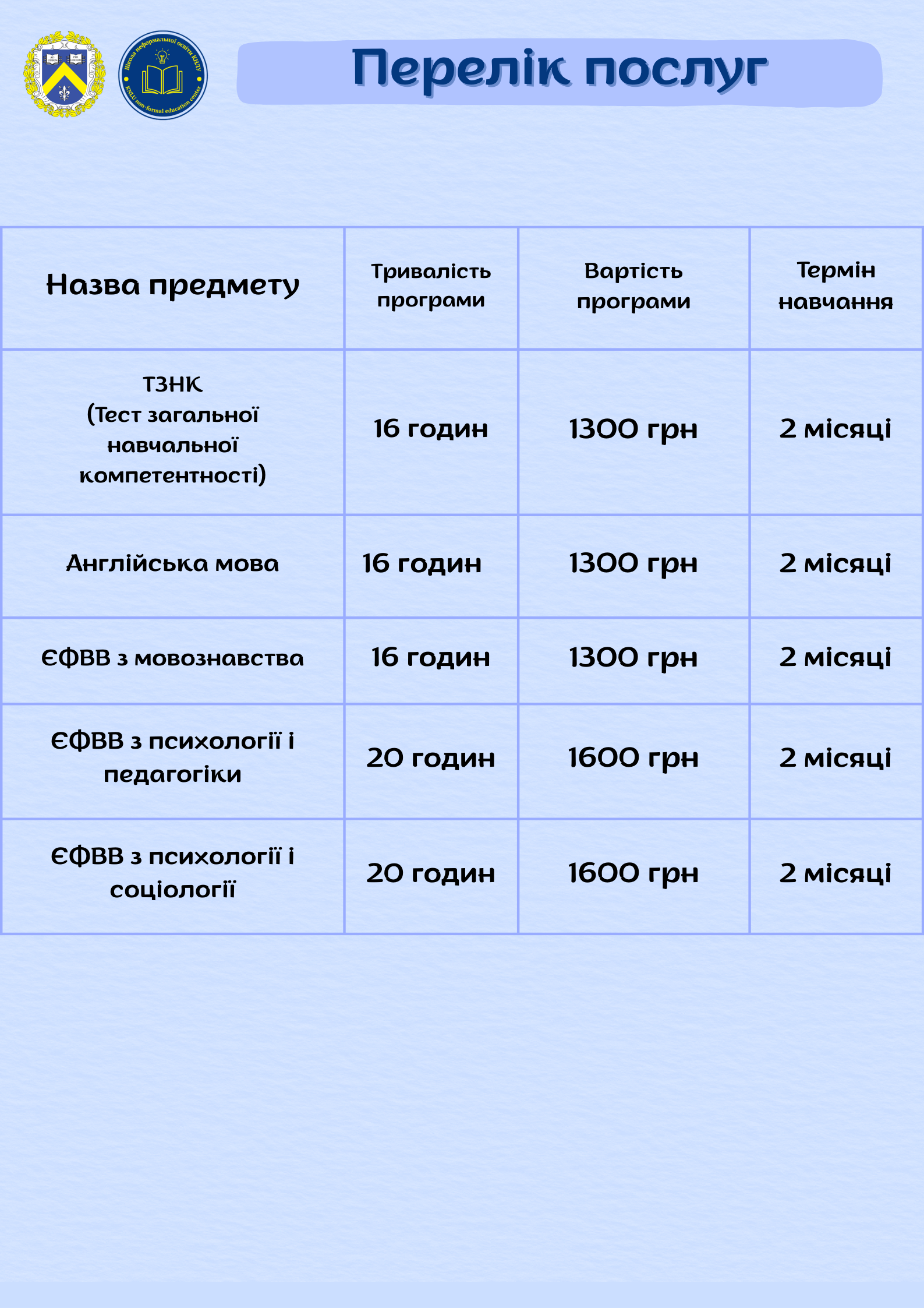 Школа неформальної освіти КНЛУ оголошує набір на підготовку до ЄВІ та ЄФВВ!