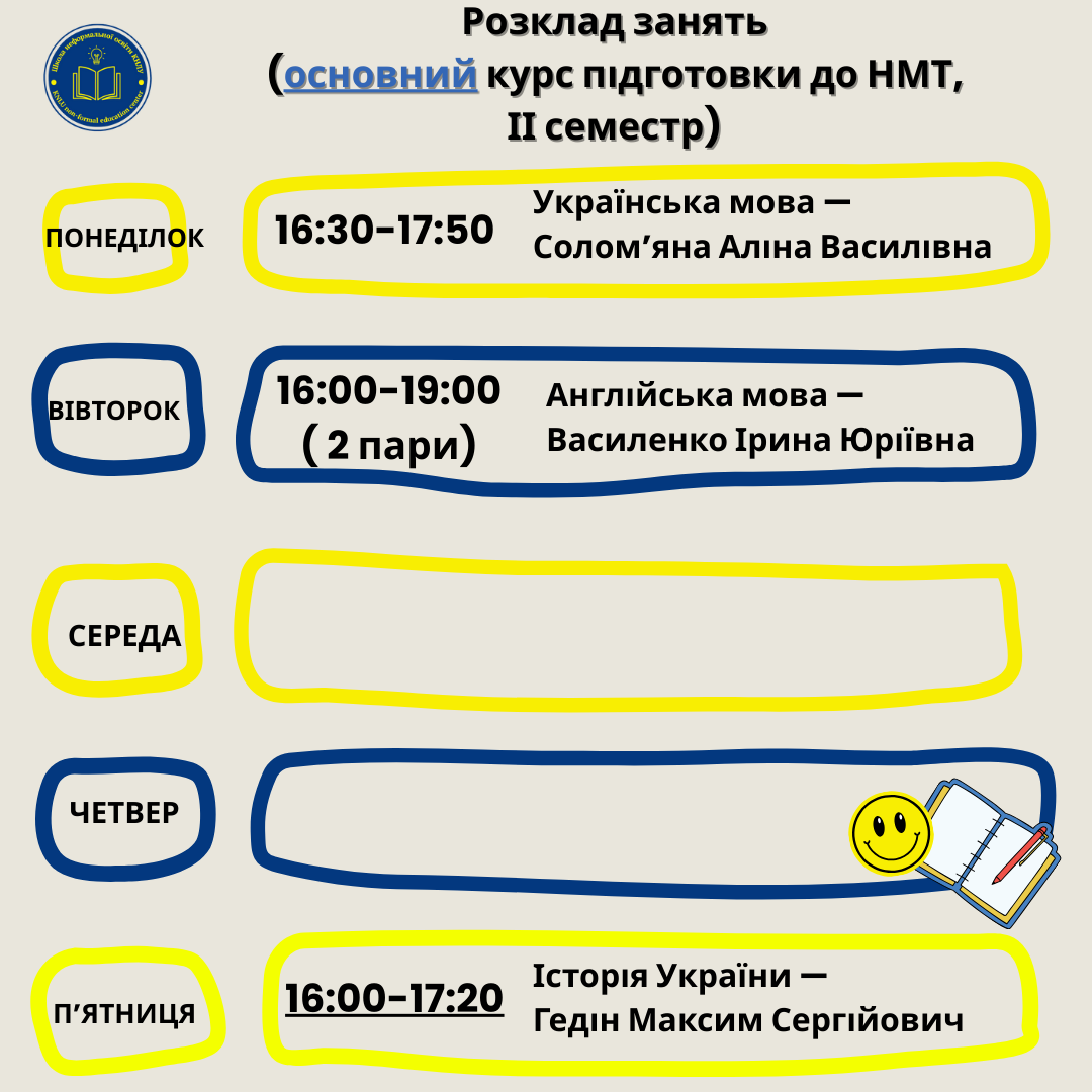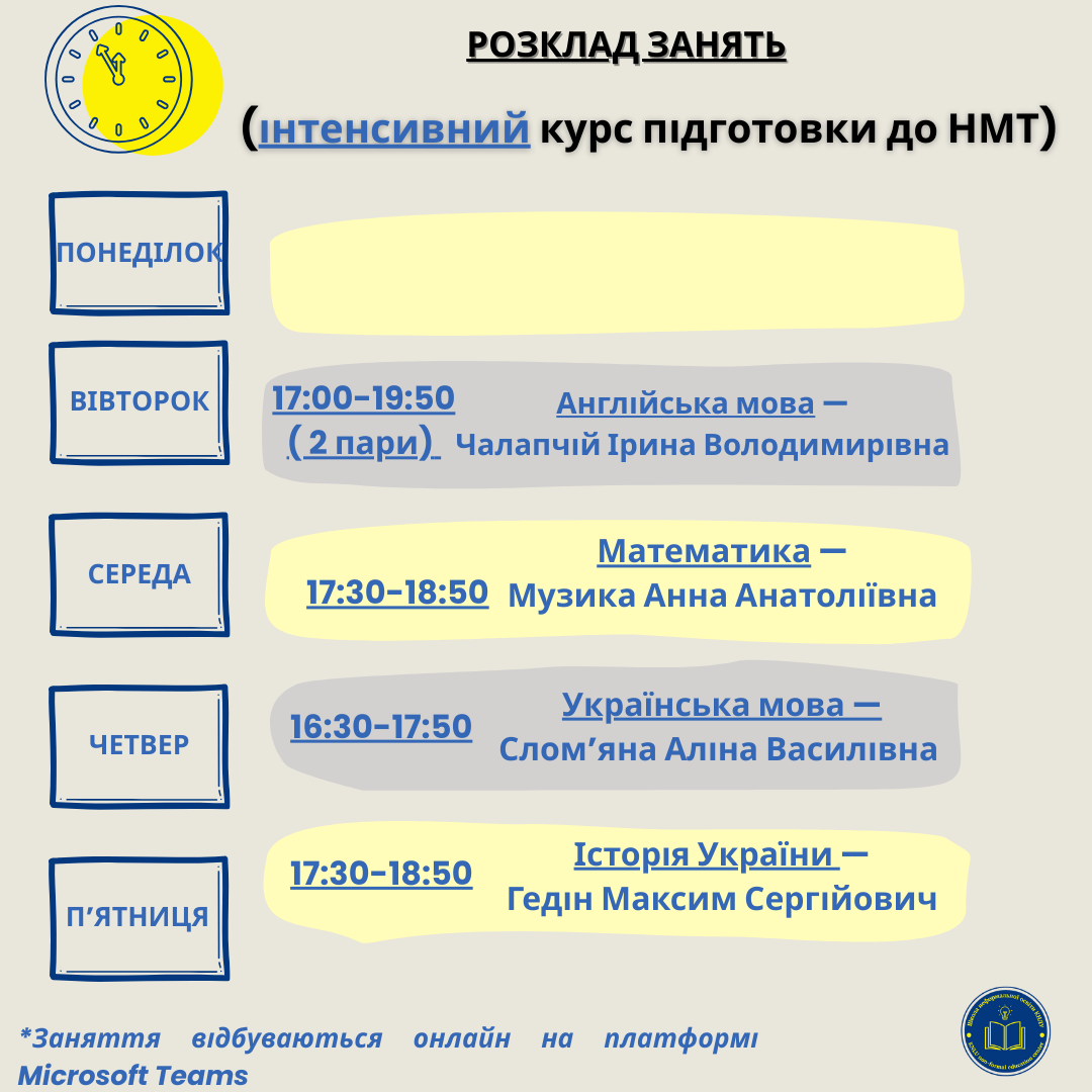 Розклад занять курсу підготовки до НМТ